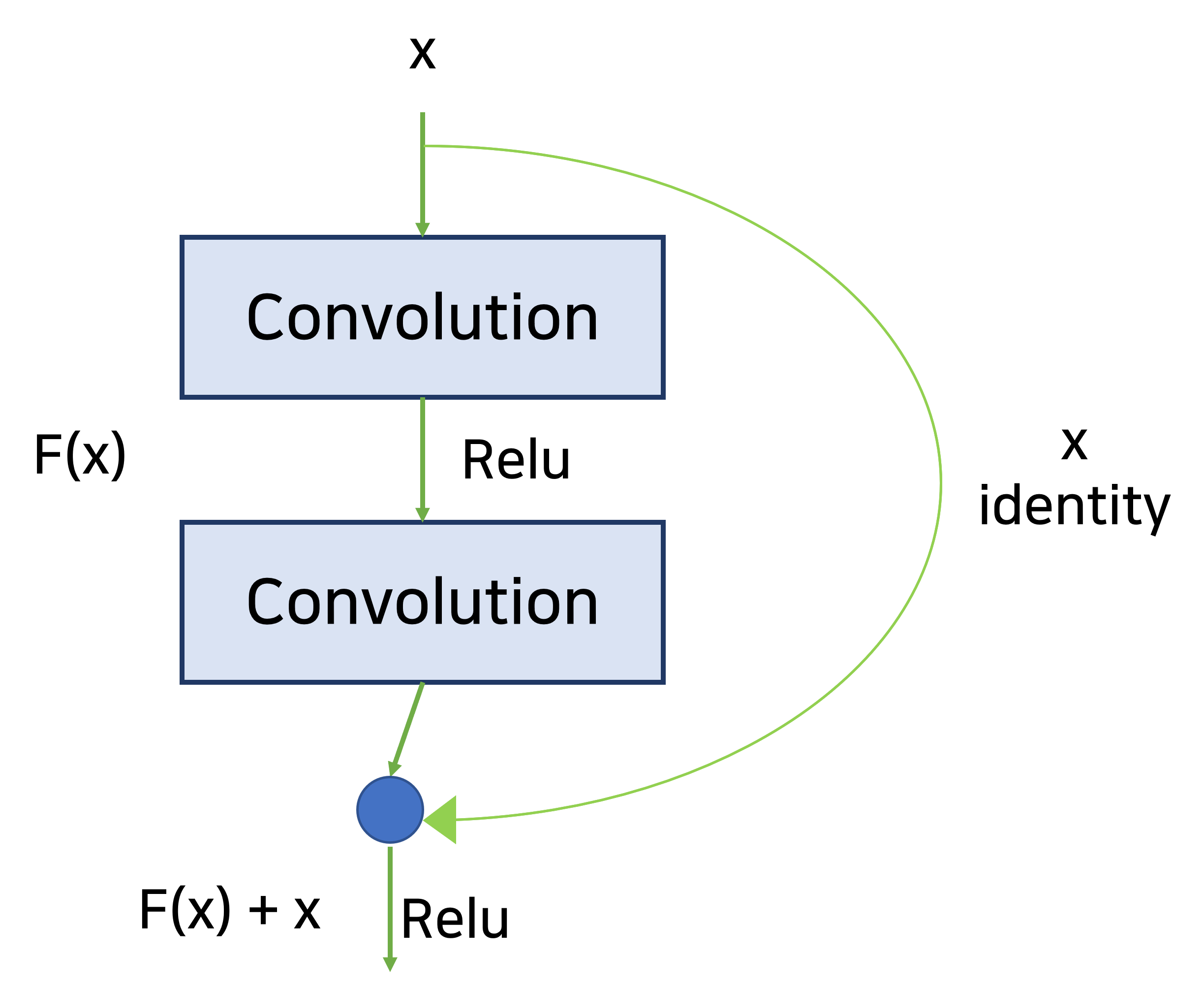 Residual Block은 일반적인 layer, 속칭 Plane layer와는 다르게 Output에 자기자신, Identity를 더한다는 특징이 있습니다.